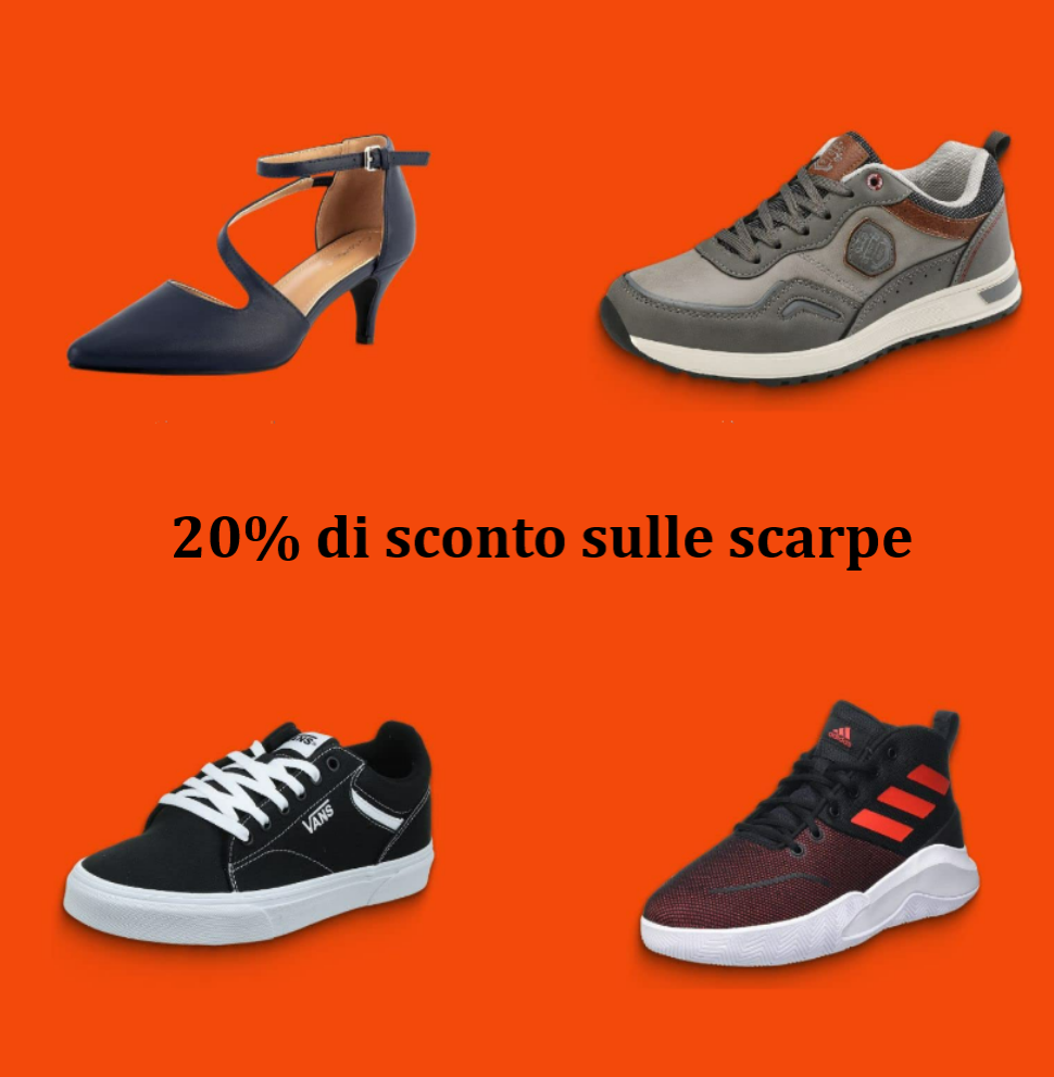 Amazon ti offre la possibilità di ricevere il 20% di sconto su un paio di scarpe a tua scelta, solo per i primi 1.000 clienti idonei, scopri se sei idoneo anche tu! Lo sconto massimo che si può ottenere con questa offerta è di 30 euro. Ogni cliente idoneo può approfittare dell’offerta solo una volta durante il periodo di validità dell’offerta. Solo i clienti che non hanno acquistato articoli della categoria scarpe prima del periodo dell’offerta avranno diritto a usufruire dell’offerta.