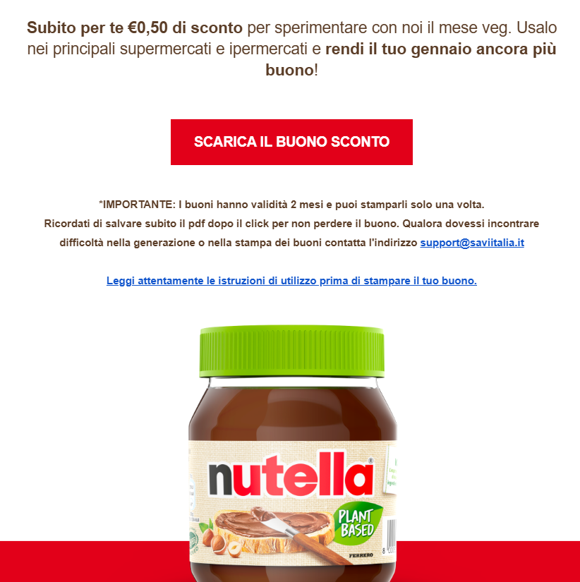 - Apri l’email che hai ricevuto da Nutella.