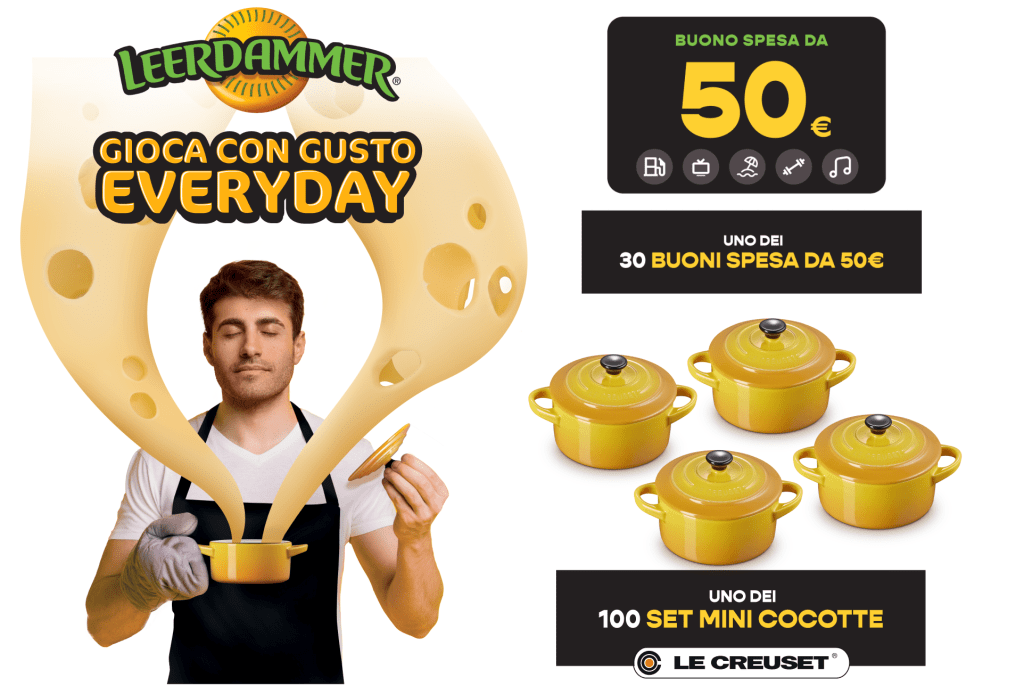 Se sei un amante del formaggio e delle promozioni, il concorso Leerdammer “Gioca con gusto Everyday” potrebbe essere l’occasione perfetta per te! Partecipando, puoi scoprire subito se hai vinto uno dei 100 set di Mini Cocotte Le Creuset o uno dei 30 buoni spesa da 50€.