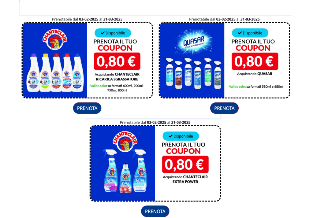 - Prenota i tuoi coupon preferiti: scegli tra quelli disponibili sulla pagina dell’iniziativa.